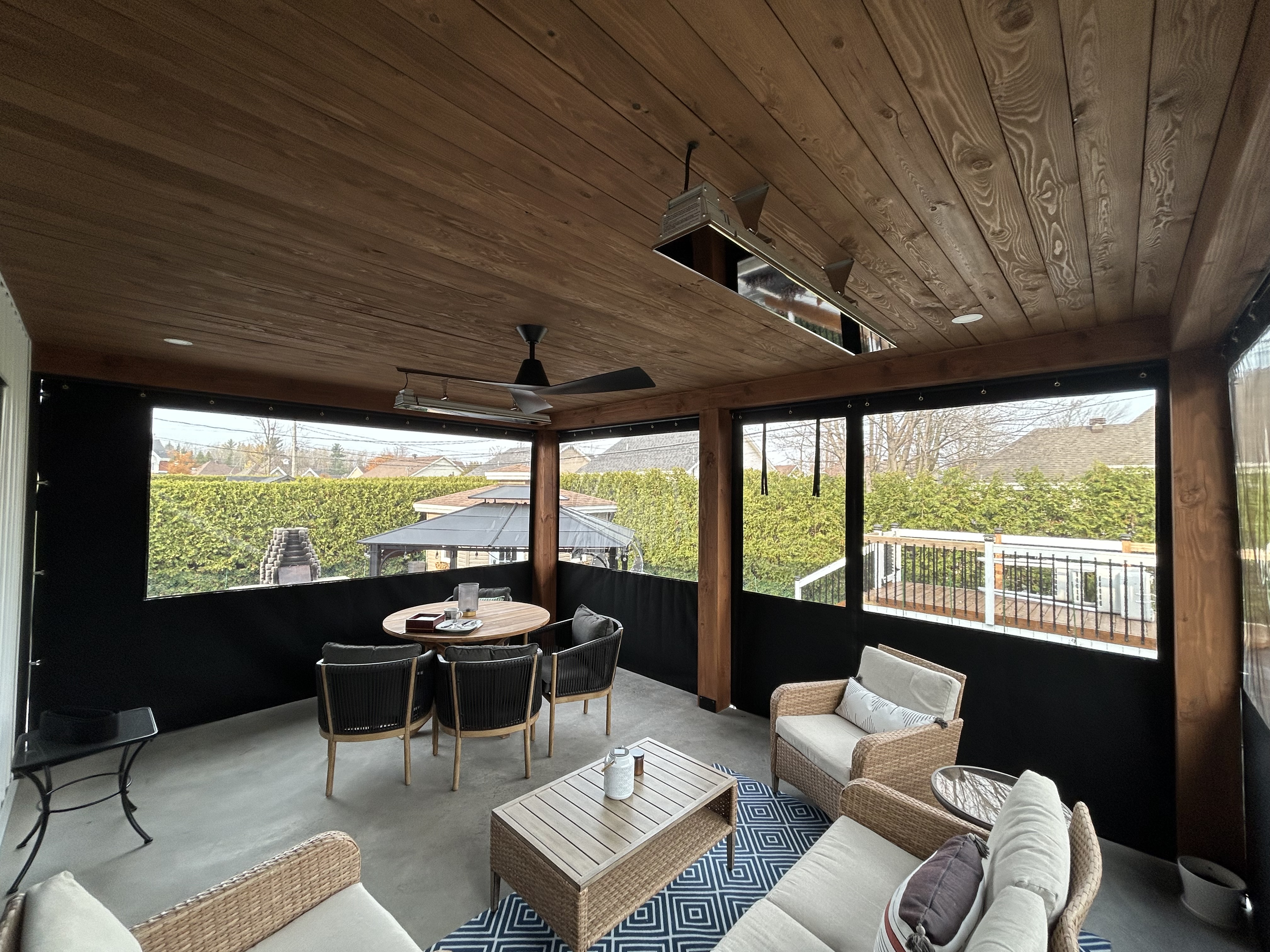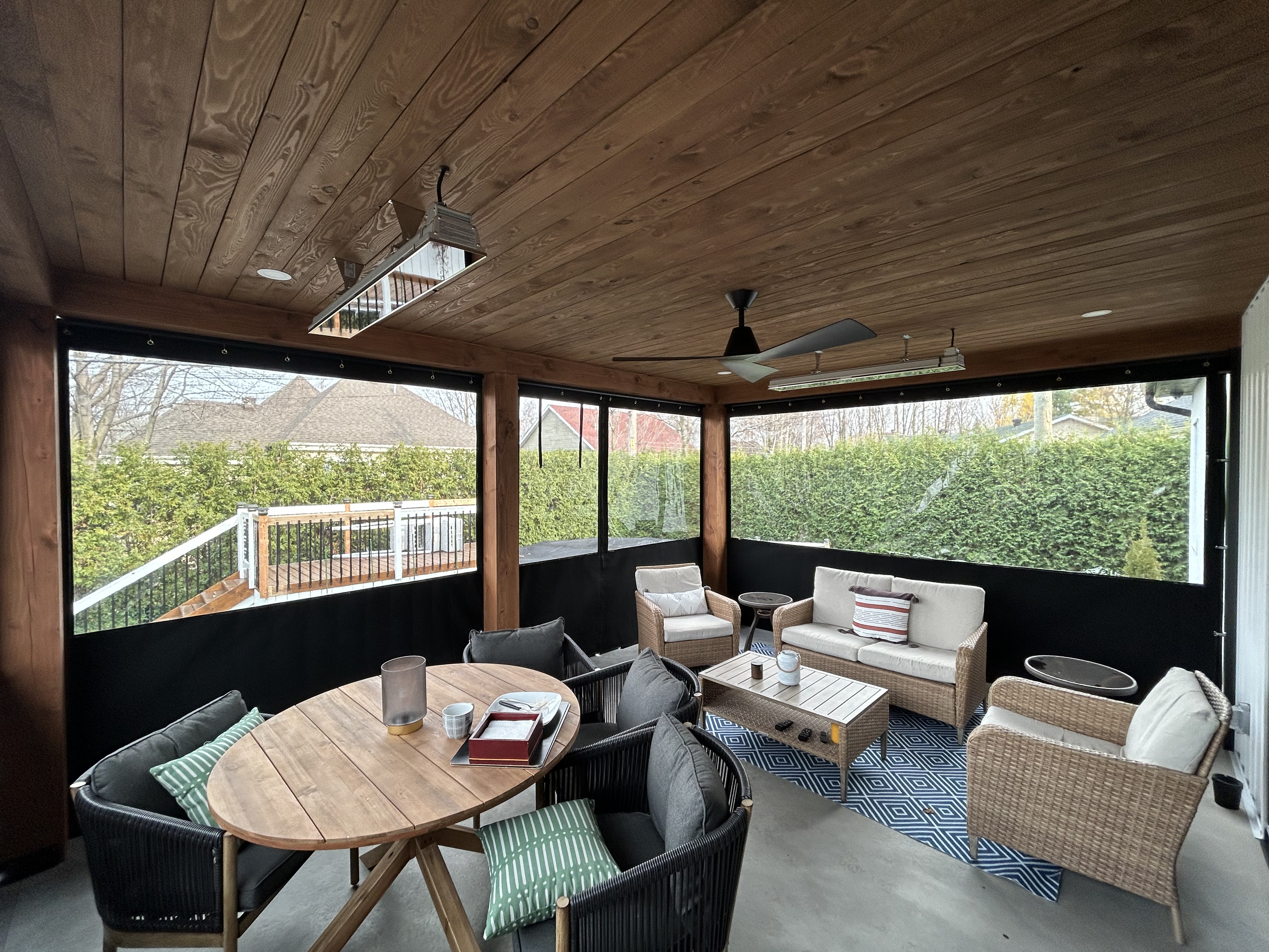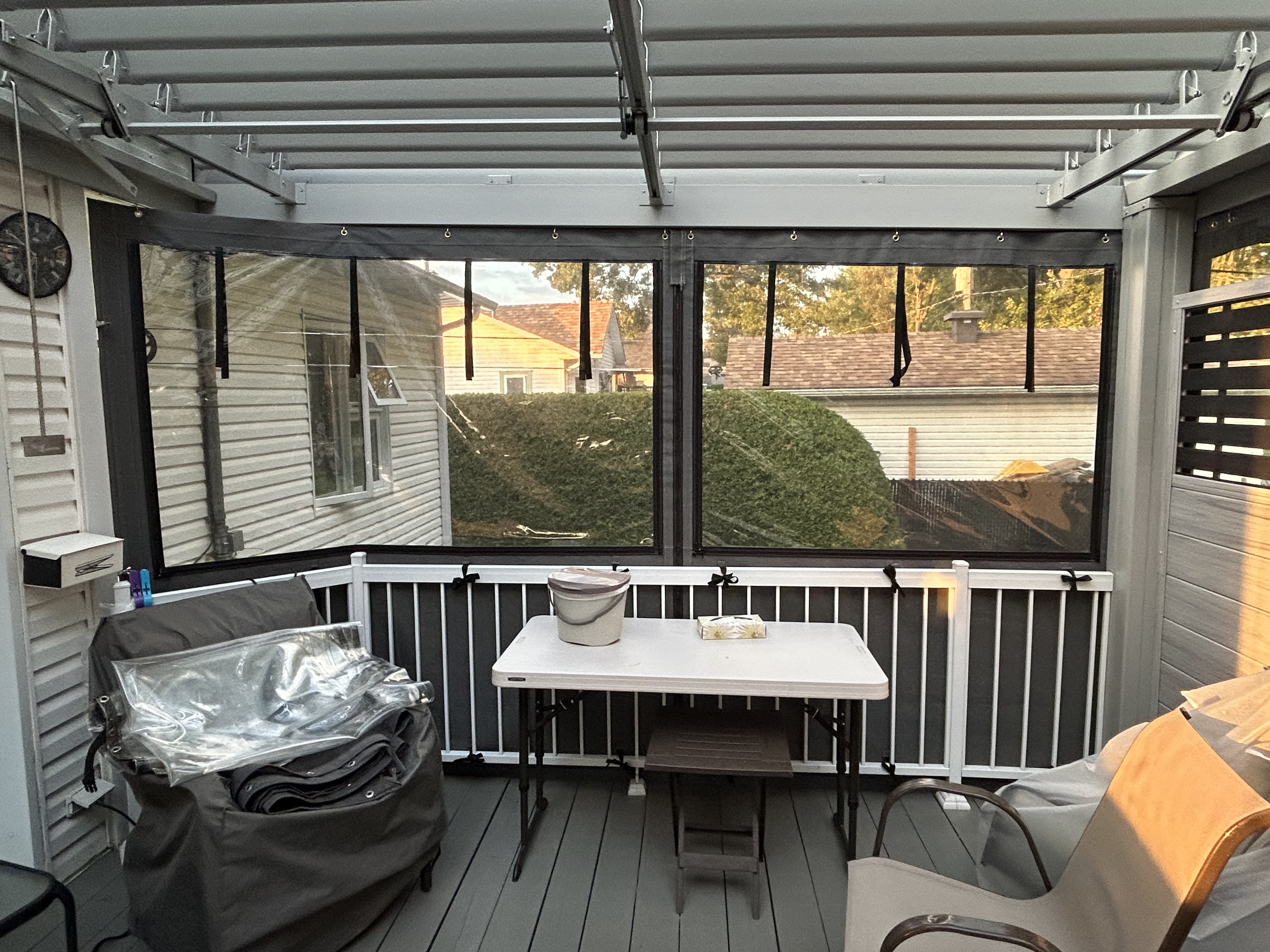 Notre équipe se charge de tout, de la prise de mesures à l’installation professionnelle, afin que votre terrasse ou votre patio devienne un espace confortable, élégant et fonctionnel, été comme hiver.
