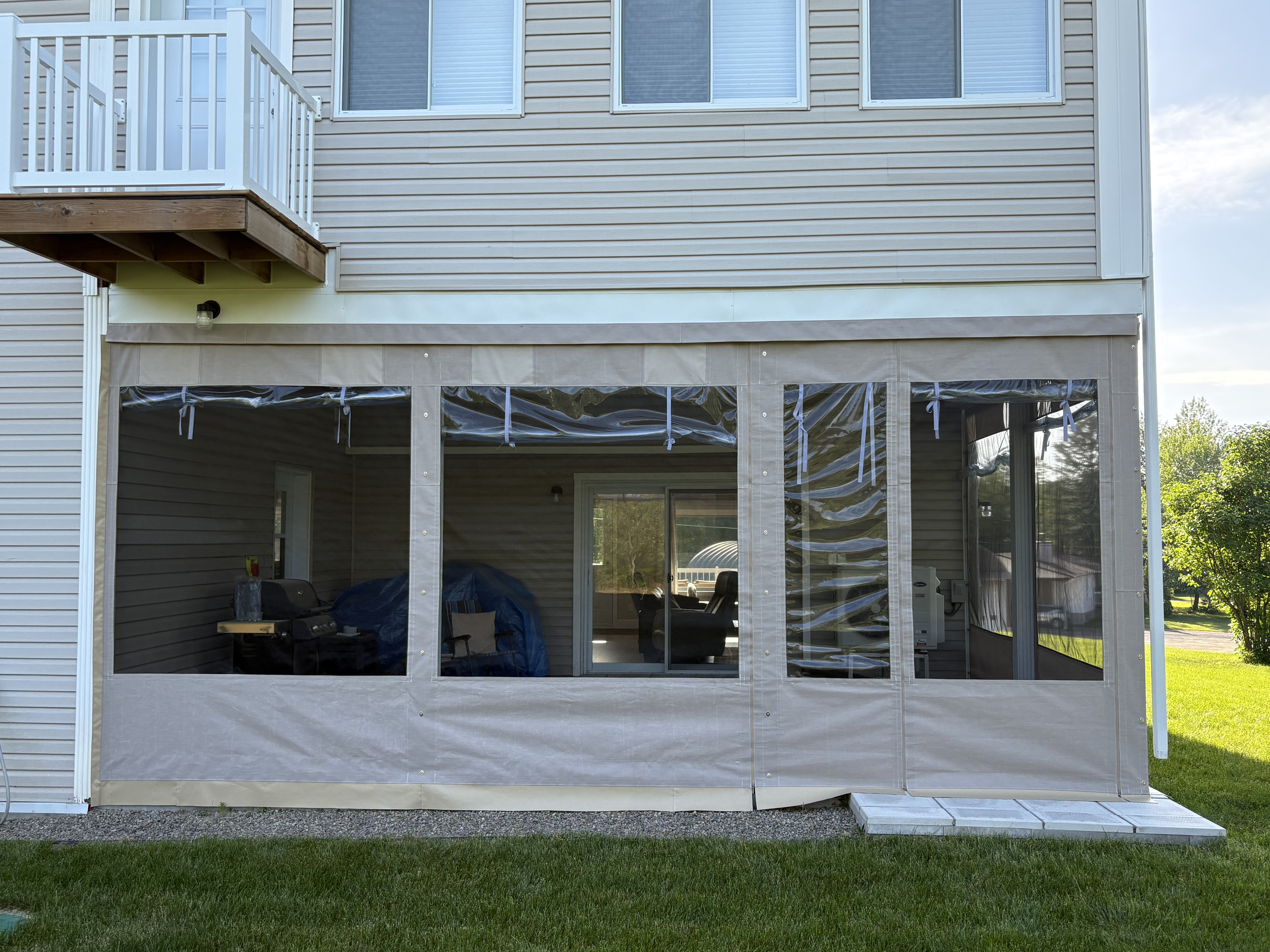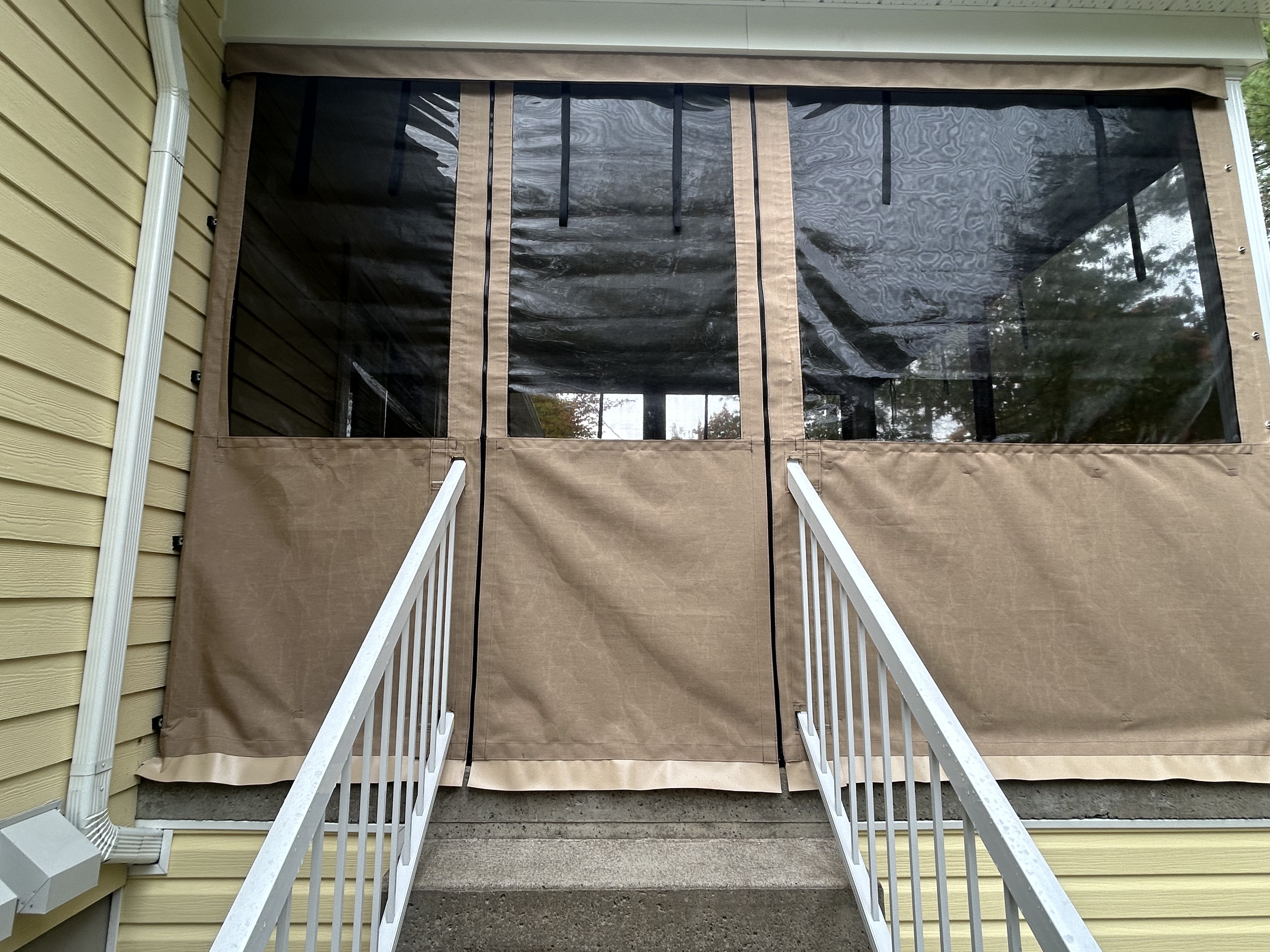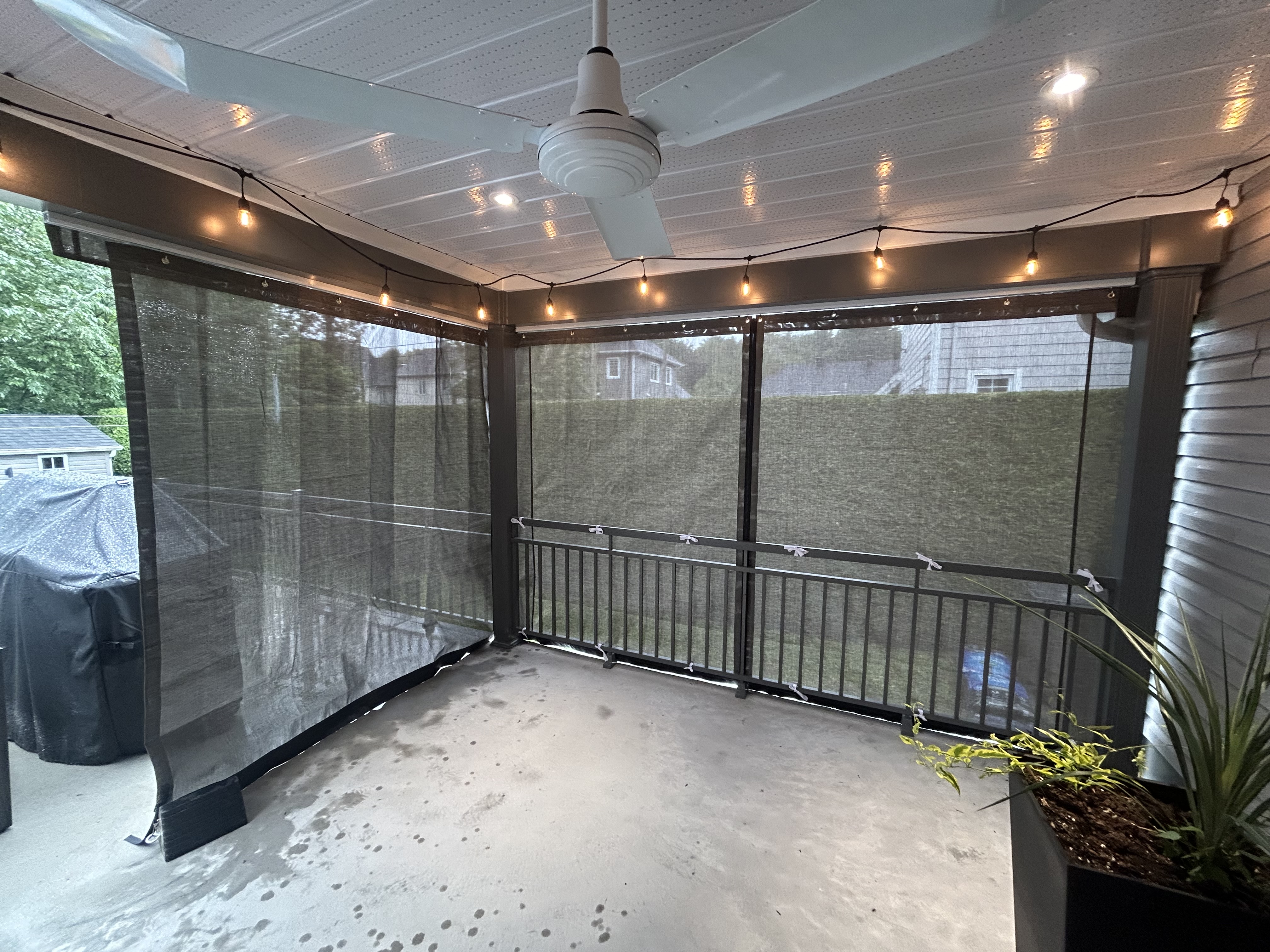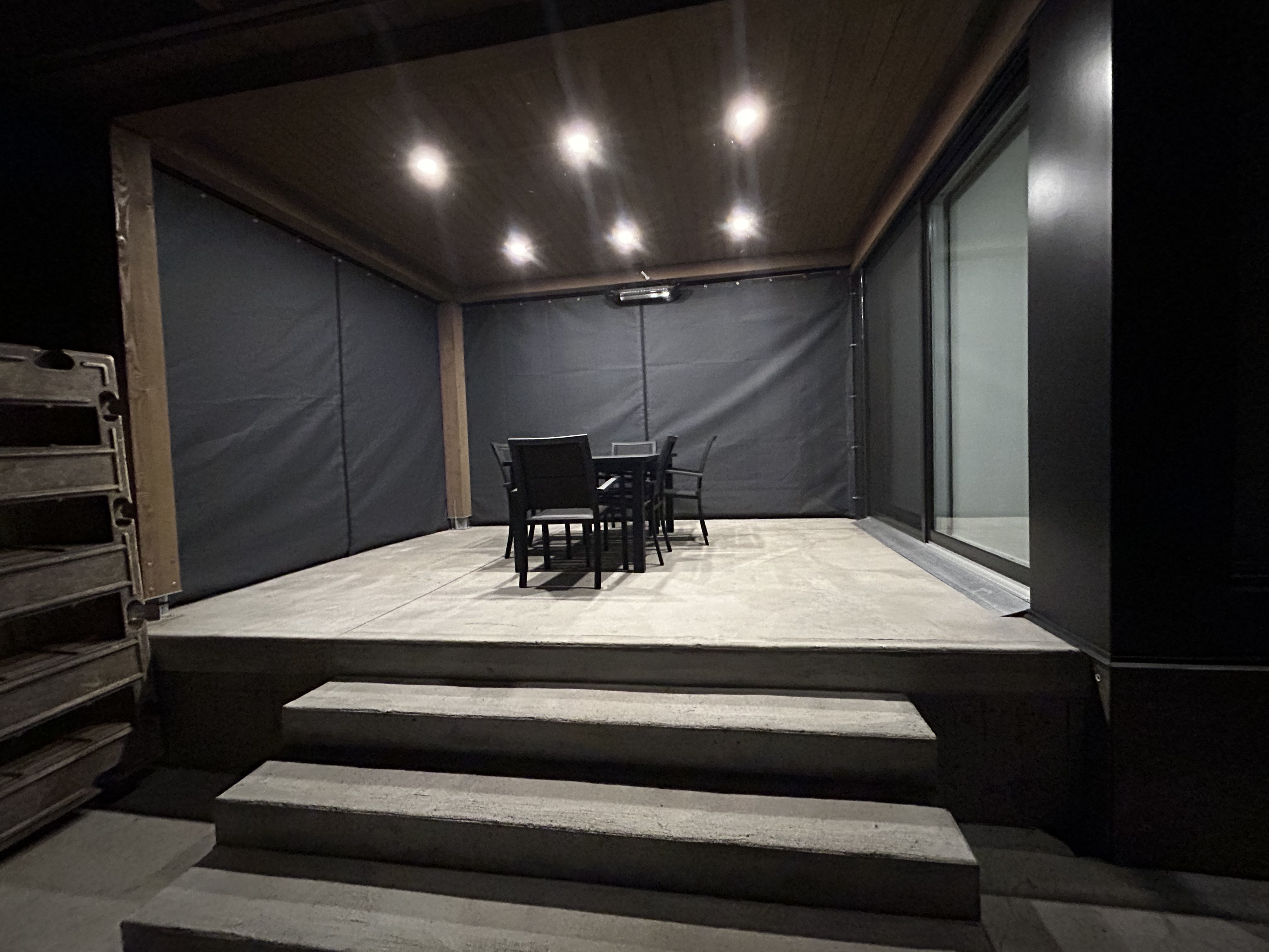 Rideaux sur rail — Super pour créer de l’intimité et bloquer le vent.