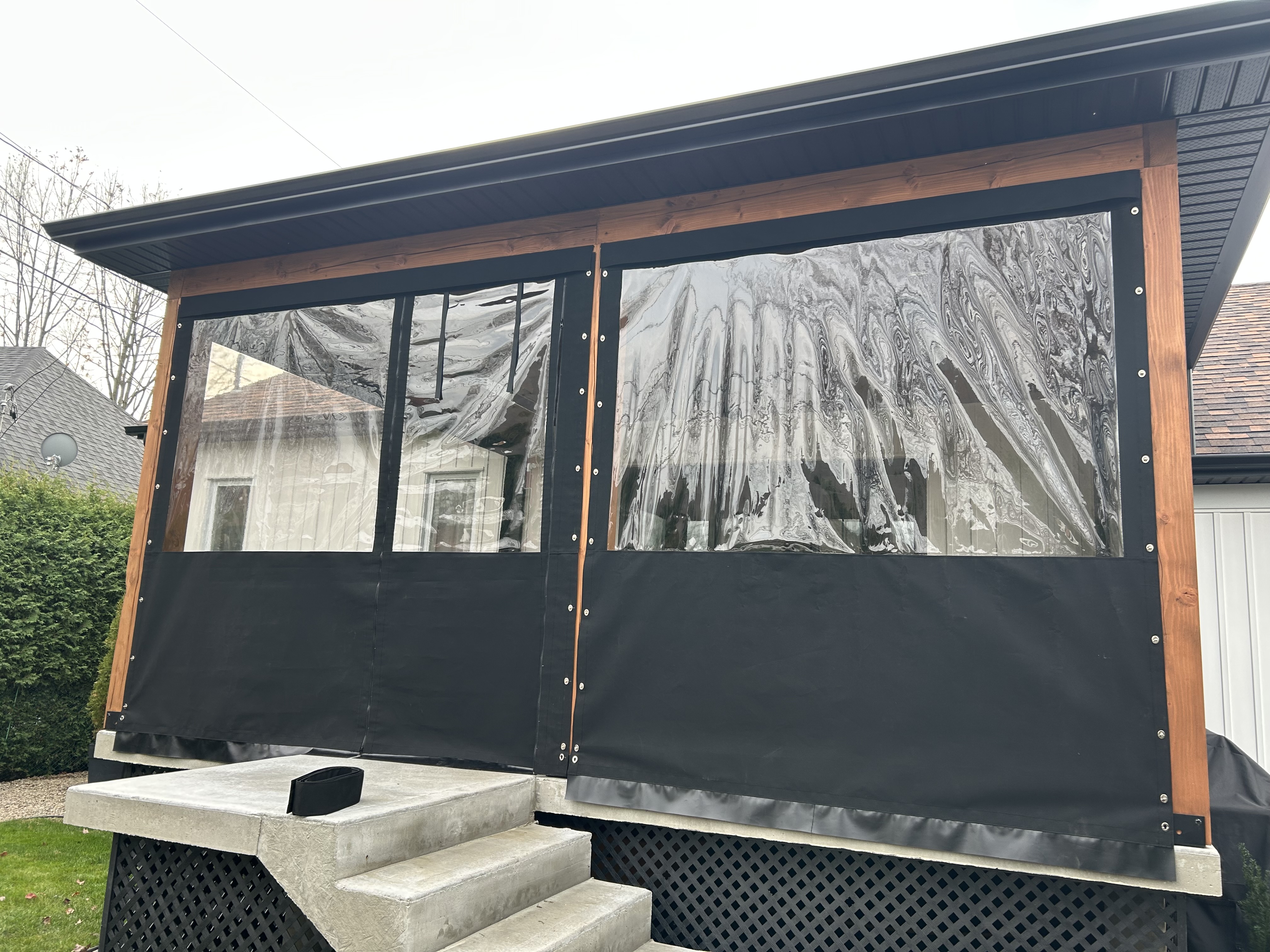 Chez Les Toiles St-Félix inc., nous savons que chaque espace extérieur est unique. C’est pourquoi nous offrons des solutions sur mesure qui s’adaptent à presque tous les types de structures — qu’il s’agisse d’une pergola, d’un gazebo, d’un balcon ou d’une terrasse entièrement ouverte.